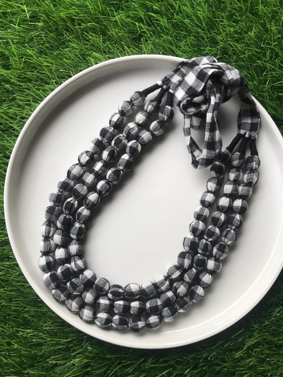 A classic black 3-layered fabric bead necklace that blends elegance with simplicity. This versatile piece from Charul Jewellers is perfect to style with ethnic grace or modern chic.