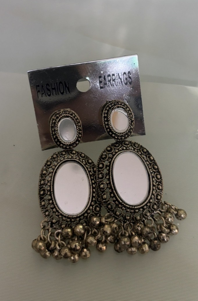 Antique Mirror Work Oxidised Earrings