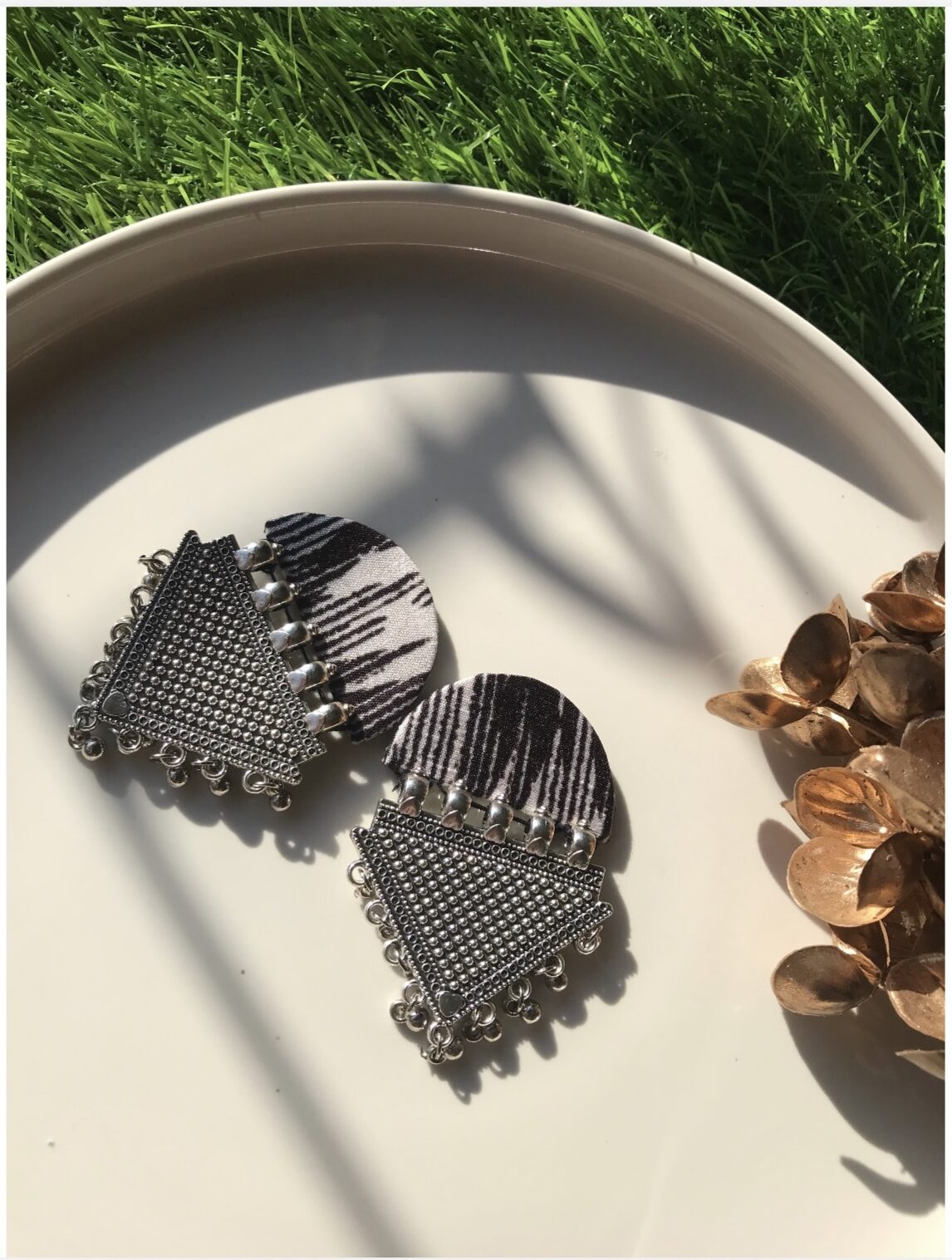 Elegant crescent-shaped earrings with intricate detailing