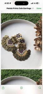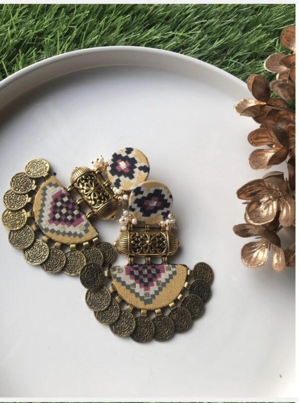 Beautiful Patola printed earrings, offering a vibrant and traditional touch to your look. Perfect for festive occasions.
