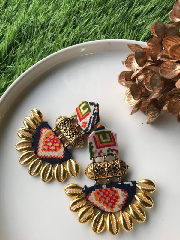 These distinctive earrings combine natural shell elements with beautiful Potala-inspired prints. The unique combination of organic textures and artistic patterns creates a one-of-a-kind accessory. Lightweight and comfortable, these earrings are perfect for adding an artistic flair to your everyday or special occasion looks.